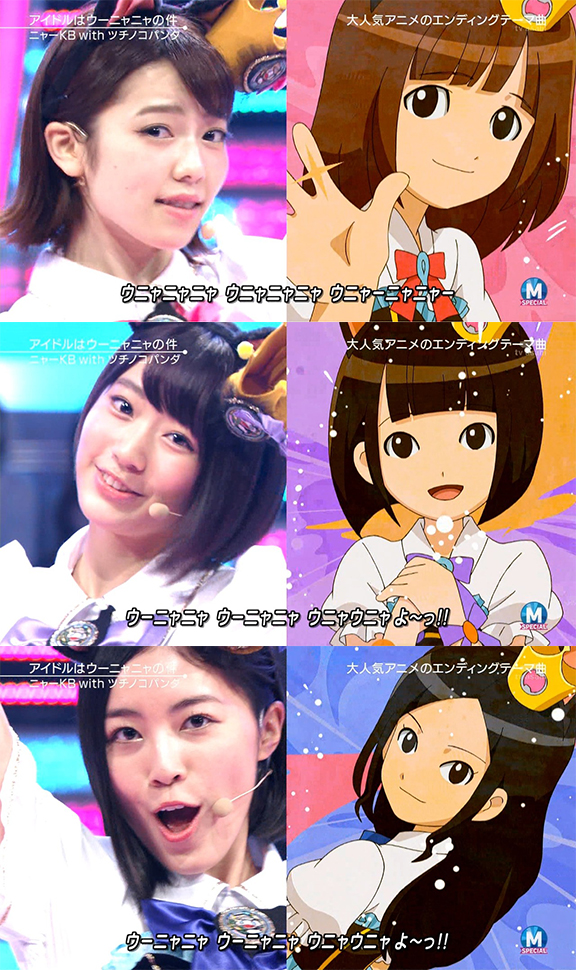 Por otra parte, en el programa de TV Music Station transmitido el viernes 3 de abril se prsentó el subgrupo «Nyā KB u~izu tsuchinokopanda», quienes interpretaron su sencillo debut «Aidoru wa ūnyanya no kudan» (Hasta las idols deben ir al baño) en una colaboración con uno de los personajes del popular ánime/juego «Youkai Watck» , a la venta el 8 de abril.