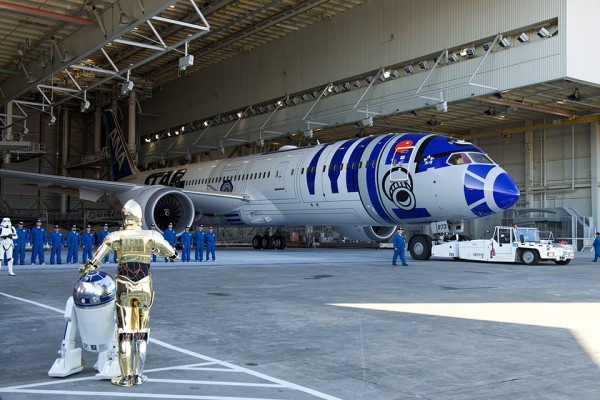 El sábado 12 de septiembre la aerolínea japonesa ANA (All Nippon Airways), presentó en la planta de Boeing localizada en Seattle Washington, Estados Unidos, su primer avión modelo 787-9, con una cromática especial que representa al robot «R2-D2» de la saga fílmica de «Star Wars».