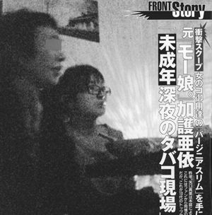 La revista «Friday», un magazine semanal que se especializa en fotografías «paparazzi» de celebridades, capturó a Ai Kago de 18 años fumando en un restaurant del distrito Ebisu de Tokyo el pasado 28 de enero junto a otros 3 acompañantes, según lo informa el vocero de la agencia.