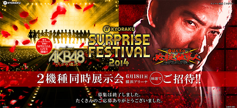 teamsorprisePara el miércoles 18 de junio está programado un live especial del «Team Surprise» de AKB48 en un evento patrocinado por la compañía de Pachinkos «Kyoraku». En dicho live el equipo sorpresa presentará nuevo material y las integrantes senbatsu que participarán se mantiene en secreto, toda vez que en el sitio web del grupo temporal un contador de tiempo marca una cuenta regresiva para revelar la «sorpresa» de este año.