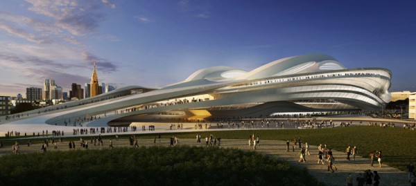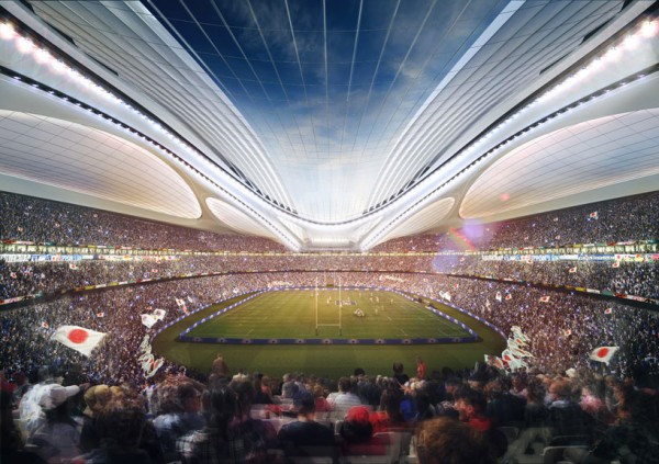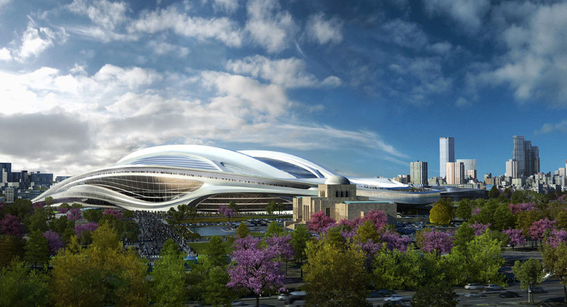 El nuevo estadio, que parece una nave espacial o un casco de ciclista, fue diseñado por la arquitecta anglo-iraquí Zaha Hadid, quién también diseñó el centro acuático para los Juegos Olímpicos de Londres 2012, sin embargo, su propuesta fue puesta a análisis después que Tokyo ganó el año pasado el derecho a organizar los juegos olímpicos del 2020, debido a que un comité consideró que su construcción sería muy costosa argumentando además la falta de armonía con el paisaje urbano circundante.