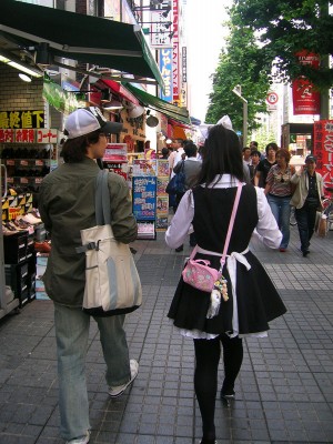 El distrito de Akihabara en Tokyo se ha convertido en los últimos años en uno de los lugares más visitados por el turismo local e internacional, convirtiéndose en el punto de encuentro para la comunidad Otaku, Geek, Gamer y Wota de todo el orbe, donde en sus populosas calles abundan locales comerciales de todo tipo y en cuyas aceras se puede observar multitud de señoritas haciendo cosplay, la mayoría de ellas disfrazadas de «Maid», quienes invitan a los transeúntes a entrar a algunos de estos establecimientos.