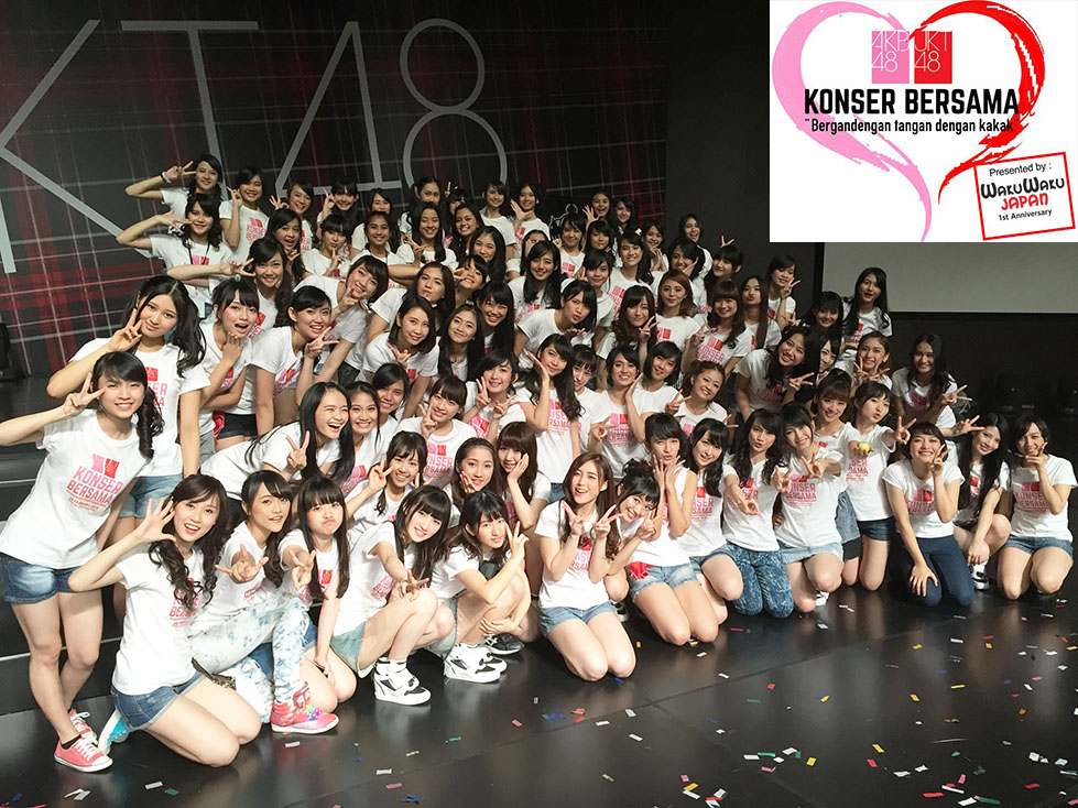 El viernes 20 de febrero integrantes del grupo idol japonés AKB48 se presentaron junto a miembros de la agrupación hermana de Indonesia, JKT48, en la capital Yakarta en un concierto especial titualdo «AKB48 and JKT48 CONCERT TOGETHER~Holding hands together with the first sister~Presented by WAKUWAKU JAPAN 1st Anniversary», con motivo del primer aniversario del canal de televisión japonés Waku Waku.