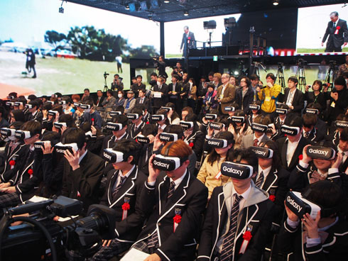 Durante una ceremonia que se realizó con motivo del inicio del nuevo ciclo escolar, setenta y tres estudiantes de una escuela en línea utilizaron gafas y auriculares de realidad virtual para ver una transmisión de vídeo el miércoles 6 de abril en Tokyo.