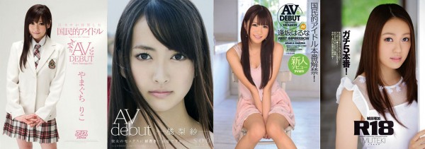 Para la industria AV es un éxito reclutar ex-idols para incrementar sus ventas, en la imagen las ex-AKB Rina Nakanishi (Riko Yamaguchi), Eri Takamatsu (Risa Tachibana), Risa Naruse (Haruna Osaka) y Rumi Yonezawa (Rika Shirota).