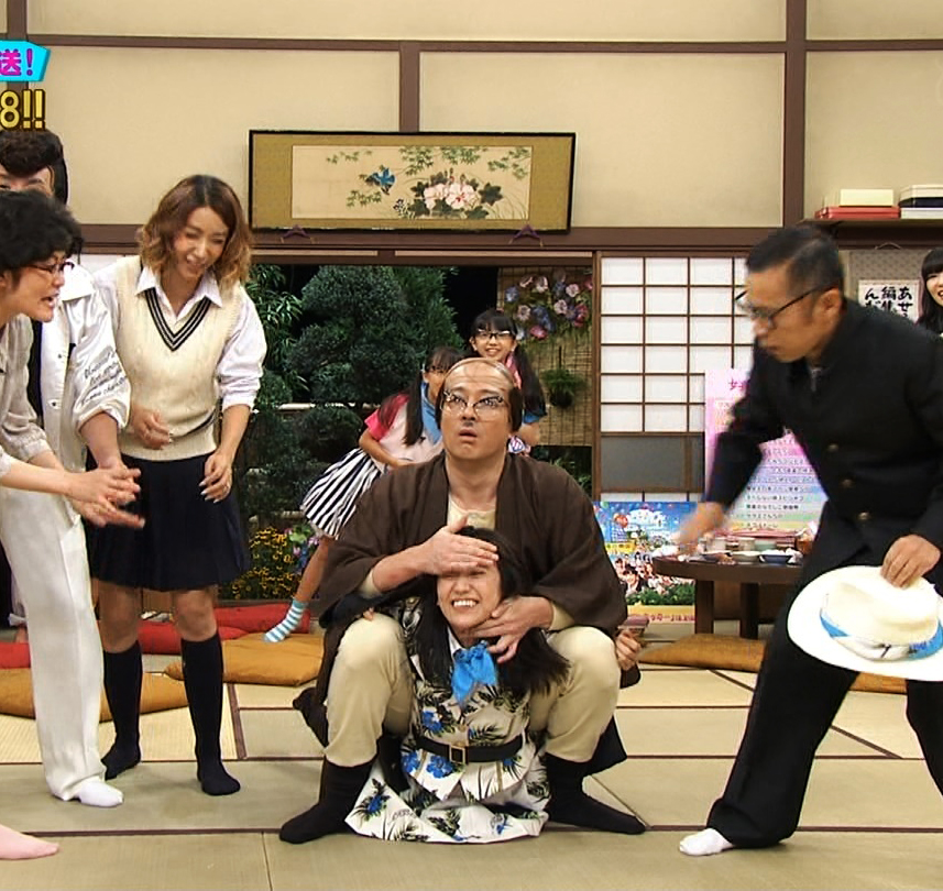El comediante Kato, personificando a un iracundo padre de familia en el segmento titulado "Bakuretsu Otosan" (padre explisivo), al igual que lo hizo el año pasado cuando las chicas de AKB48 asistieron al programa, de nueva cuenta tuvo contacto físico "extremo" con algunas de las integrantes del grupo, cargándo en su espalda y haciendo una llave de lucha libre a Yuko Oshima, dándole vueltas en el suelo a Rena Matsui, y en esta ocasión, dándole una patada en la cabeza a Mayu Watanabe.