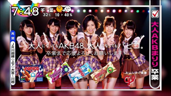 Sin embargo, estas serán las últimas participaciones de Tsukamoto con la familia 48, ya que en un comercial de TV que se lanzará al aire el 21 de julio se revela su próxima graduación del grupo el 31 de agosto, fecha en que termina la campaña publicitaria de la compañía Glico.