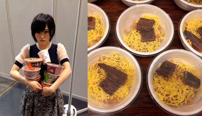 Usuarios de 2ch han descubierto que la calidad de los almuerzos del grupo idol SKE48 ha disminuído considerablemente en los últimos meses, al grado que su agencia ya no les solicita servicio de «catering» a restaurantes sino que les encarga sólamente paquetes de tallarines instantáneos. El detonante fué un tweet de Kaori Matsumura donde publicó el almuerzo que tuvieron durante el inicio de la gira de conciertos el pasado fin de semana: un plato de unaju (anguila en BBQ con arroz y tallarines) el cual no se parece en nada al unaju real y apenas contenía unos trozos pequeños de carne.