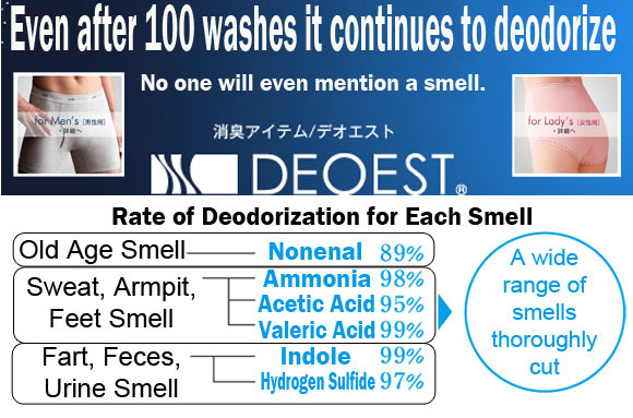 Una empresa textil japonesa ha desarrollado una línea de ropa interior para hombres y mujeres que son eficientes para la «rápida eliminación de olores fuertes corporales«, una cualidad que al principio se apreciaba sólo en el cuidado de ancianos y en los hospitales, pero que ahora resultó ser atractivo incluso para los hombres de negocios que trabajan duro todo el día.