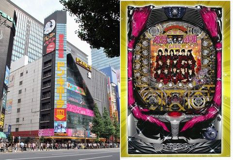 Kyoraku, que también es accionista de AKS, comercializó su primera máquina de Pachinko utilizando la imagen de AKB48 en agosto del año 2012. «Don Qujote» se convirtió en la sede espiritual de AKB48 desde el año 2005, prestando el octavo piso del edificio para albergar al teatro desde que aquel desconocido grupo idol comenzó a ofrecer su show en el distrito de Akihabara.
