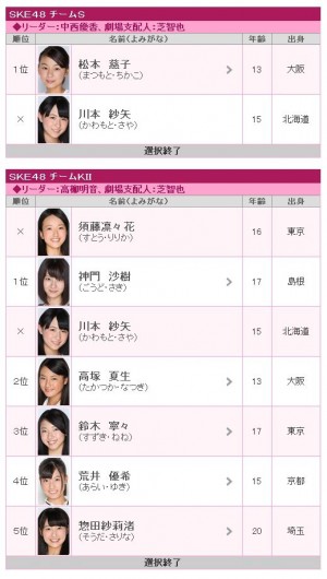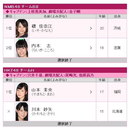 Luego del proceso de selección que se llevó a cabo en varias rondas, en donde las candiadatas contaron con la presencia de sus madres entre el público, finalmente 20 de las chicas fueron asigandas a los equipos, miemtras que el administrador Togasaki se refirió a las 9 candidatas que no fueron elegidas, indicando que si en el futuro ellas deseaban audicionar nuevamente, podrían hacerlo, ya que además se les exentaría de las primeras etapas del proceso para la elección final.