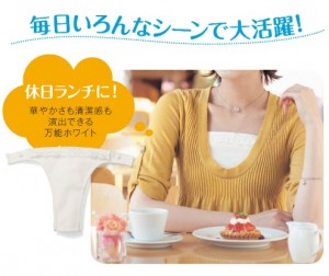 Una compañía nipona llamada «Belle Maison Monthy Club» ofrece una solución elegante y cómoda a este problema con su nueva línea de «cubierta para el pecho», que consiste en un pedazo de tela que se adhiere a su sostén para cubrir el pecho y dar la apariencia que se usa una camiseta.