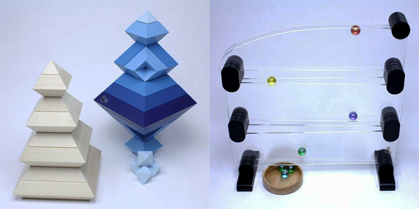 También está el Via-J, que es un juguete japonés que también puede funcionar como una pieza decorativa para el hogar y que está fabricado en acrílico transparente en el que se ponen a rodar canicas multicolores. Algo un tanto parecido al Pachinko, pero silencioso y relajante par disfrutar de su bebida.