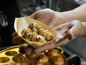 Kensuke Kakiuchi (44), dueño de un establecimiento que vende el popular alimento, se ofreció a hacer una demostración de la parrilla y dijo que con el molde de oro elaboró grandes bolas de masa con capas externas más delgadas de lo que puede hacer con su propia cocina.