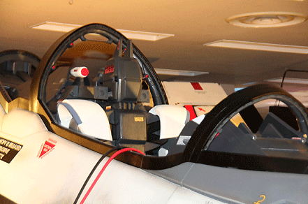 El modelo a escala que está en exhibición es el «VF-25F» ,el último diseño de robot-avión de combate que ha aparecido en la saga con la entrega de «Macross F (Frontier)».