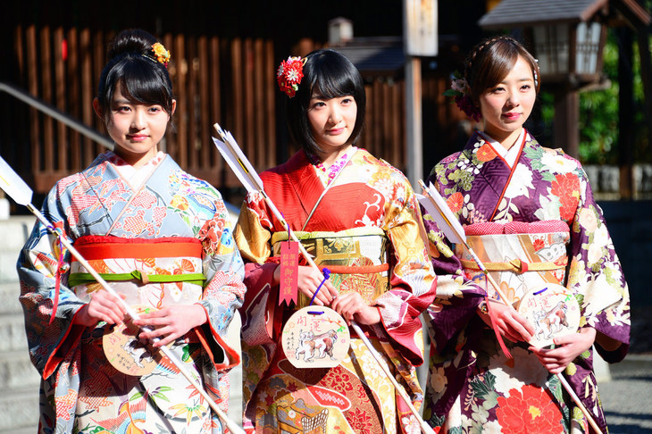 Como dicta la tradición, las tres chicas vistieron coloridos kimonos en dicha ceremonia, la cual originalmente se celebra en todo el país el segundo lunes del mes enero, fecha en la que se festeja a l@s jovenes que han cumplido la mayoría de edad legal en Japón.