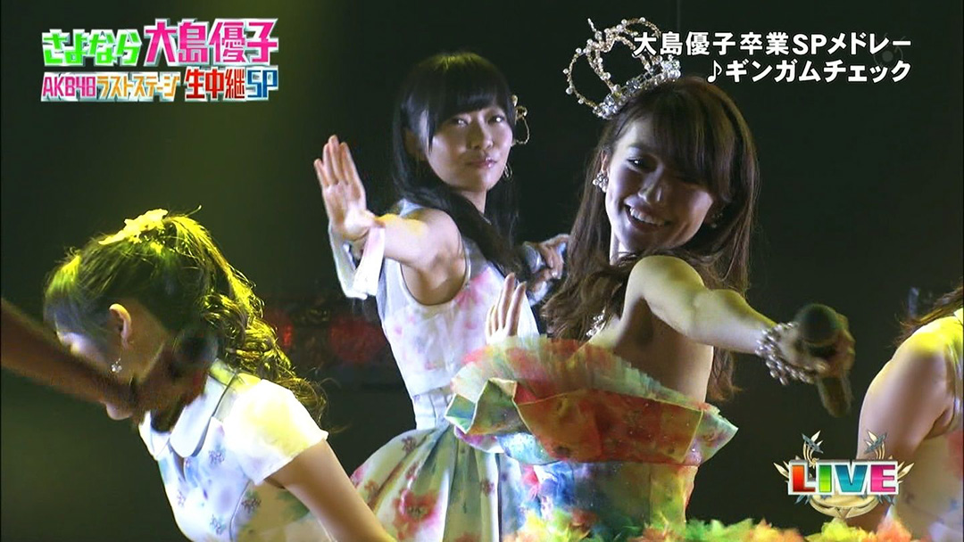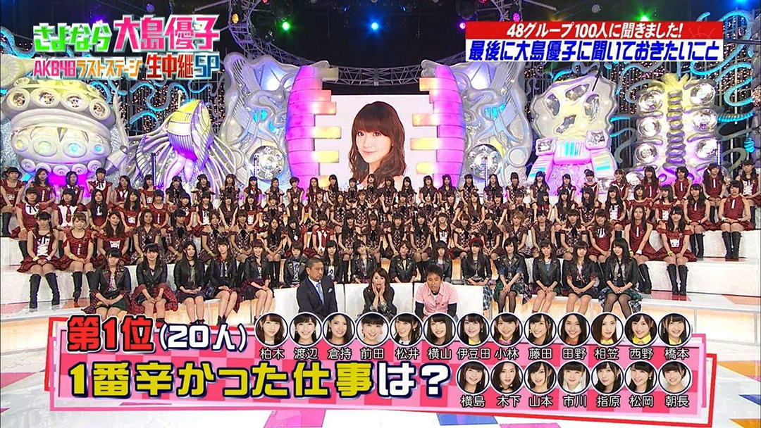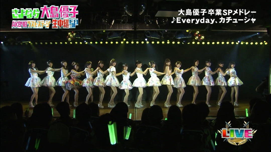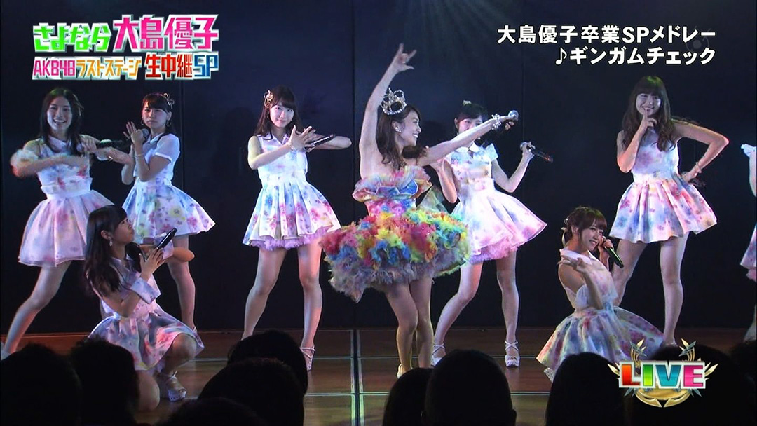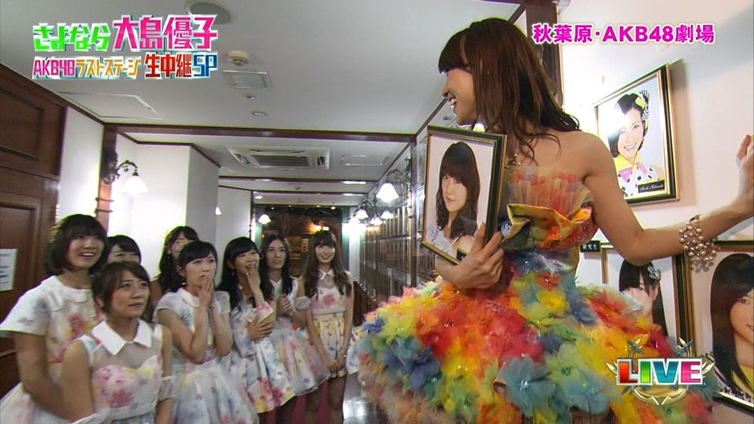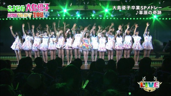 Porciones del stage de graduación fue transmitido en vivo a través de un programa especial de «Hey!,hey!,hey!», donde se invitó a 100 integrantes de AKB48 y se hizo una semblanza de la trayectoria artística de Oshima, quién también llevó a cabo la ceremonia del retiro de su retrato del pasillo del teatro AKB.