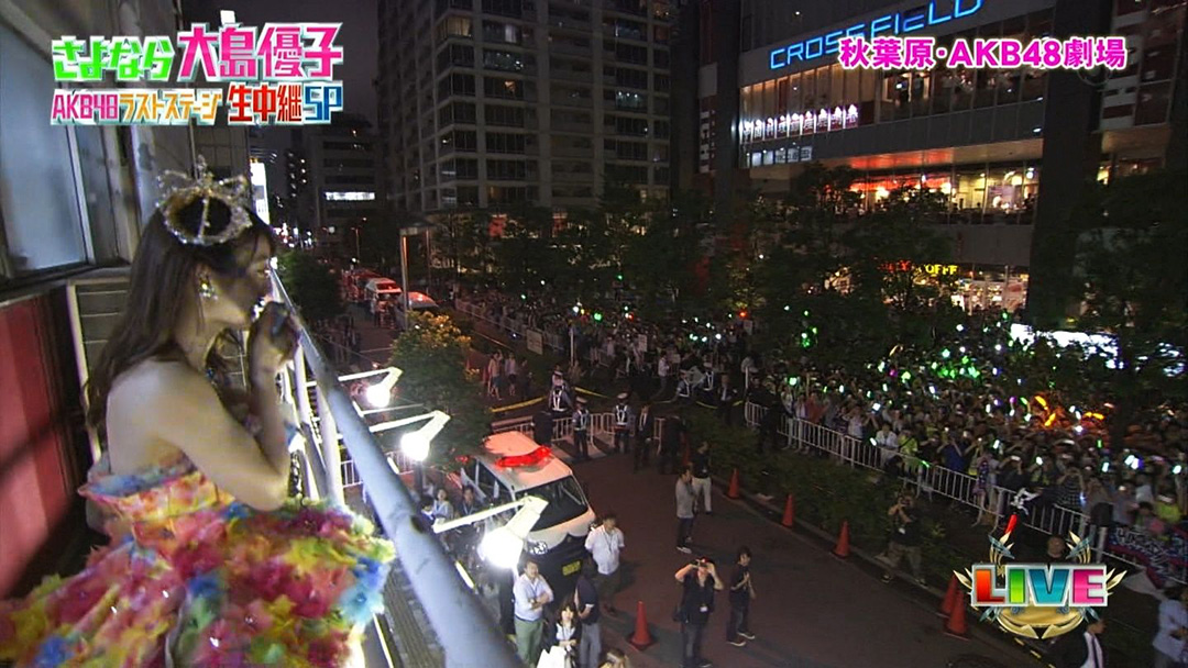 Además del discurso de despedida de Oshima, donde dijo que «AKB48 es su más grande tesoro», la ahora ex-integrante agradeció a las decenas de wotas que no pudieron entrar al stage desde un balcón al exterior del teatro de Akihabara.