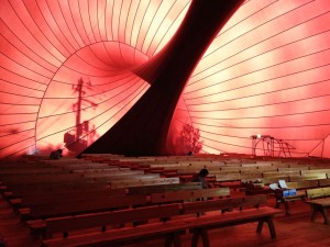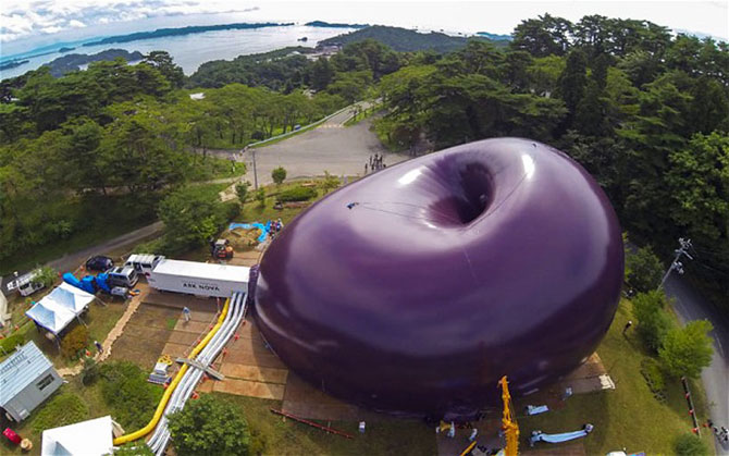 El escultor británico Anish Kapoor y el arquitecto japonés Arata Isozaki crearon la llamada "Ark Nova", una estructura neumática fabricada de un material recubierto de poliéster que se ha erigido en un parque en la ciudad de Matsushima, prefectura de Miyagi.