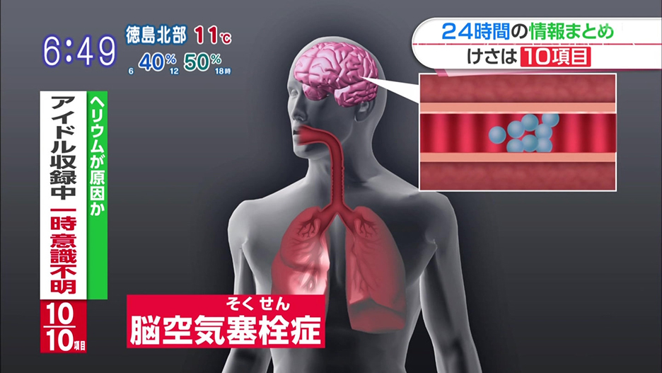 Una integrante del grupo idol «3B Junior», cuyas 27 miembros son menores de 18 años de edad, fue hospitalizada el pasado 28 de enero, luego de caer en coma por inhalar gas Helio durante la grabación de un episodio del programa de TV “3B Junior Stardust Shoji”, transmitido por la cadena de TV Asahi.