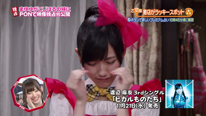 El capítulo especial donde aparecerá Mayuyu será utilizado para promocionar el lanzamiento de su tercer sencillo como solista titulado «Hikaru Monotachi», el cual será puesto a la venta el 21 de noviembre.