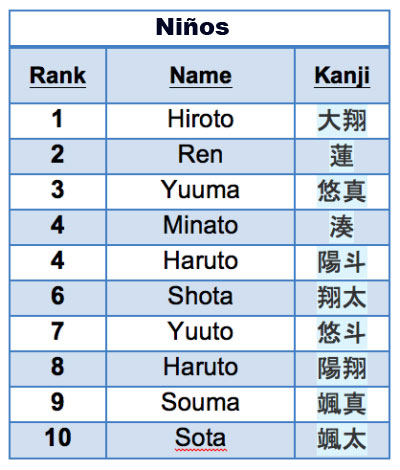 En Japón, el poner un nombre a un hijo adquiere un obstáculo adicional, ya que no sólo tiene que elegir un nombre, también hay que elegir el kanji (caracter chino) que compone ese nombre. De entre los 10 nombres más populares para las niñas aparece el kanji para expresar «amor».