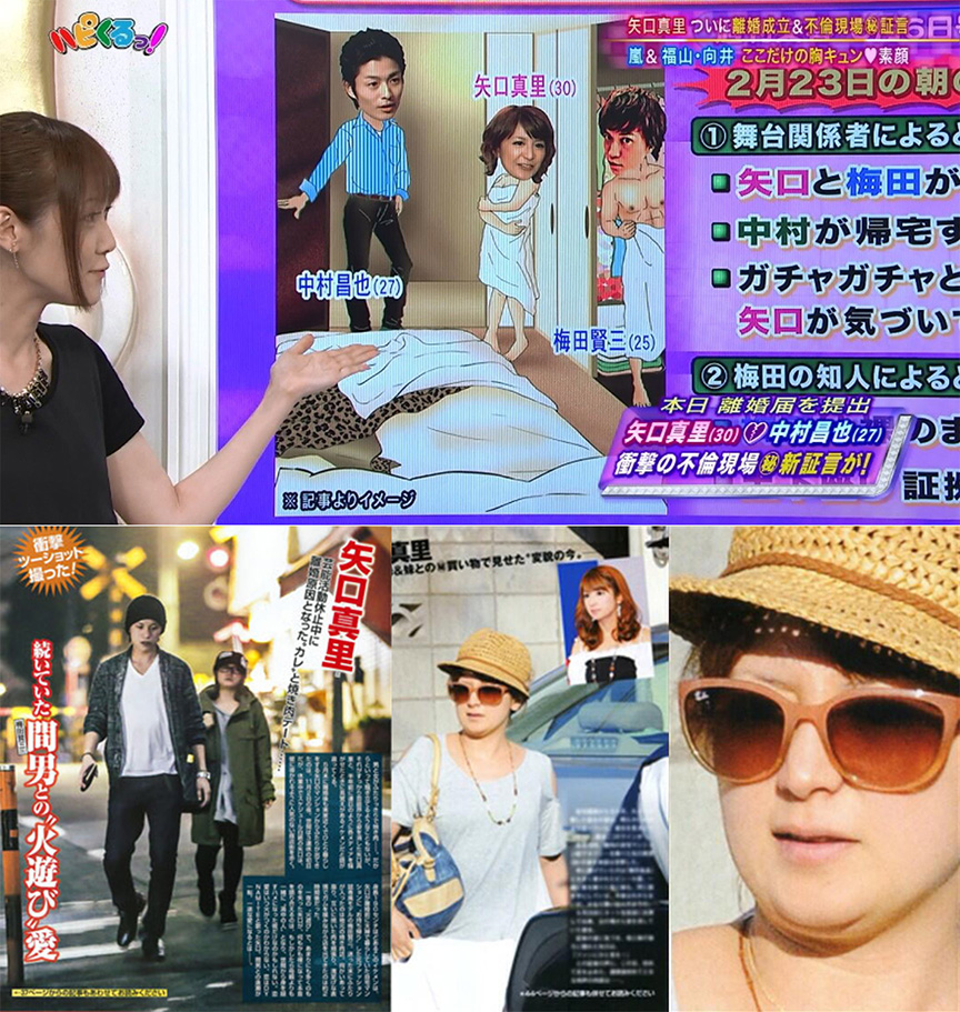 Durante la entrevista, Yaguchi respondió a las preguntas formuladas por los conductores del show y en donde confesó sentirse arrepentida por el asunto que finalizó con el divorcio de su ex-marido Nakamura.