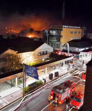 De acuerdo a imagenes difundidas por la televisión, grandes llamaradas y un denso humo cubrían una buena cantidad de edificaciones en la ciudad de Itoigawa.
