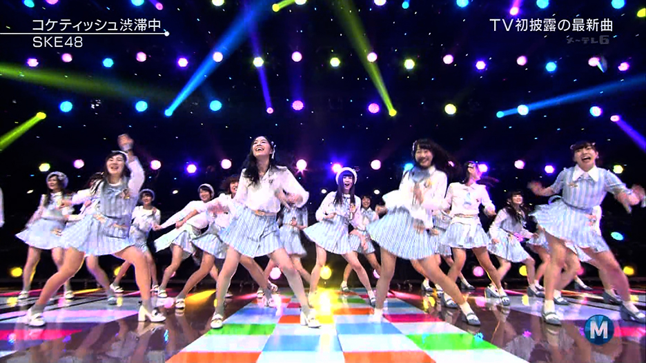 aske48También el viernes 20 de febrero en el programa de TV «Music Station», el grupo de Nagoya SKE48 presentó por primera vez su sencillo número 17 titulado «Koketisshu Jutai-Chu», el cual será lanzado el 31 de marzo, el mísmo día en el que NMB48 pondrá a la venta su sencillo número 11.