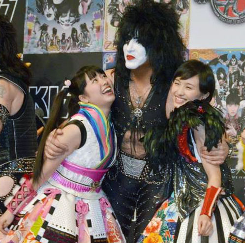 Antes de que «KISS» inicie su gira el 3 de marzo en el Tokyo Dome, celebrando su 40 aniversario, estuvieron acompañados por las cinco integrantes de «Momoclo», y durante la conferencia Gene Simmons (65) dijo que las chicas «son realmente unas estrellas de Rock».