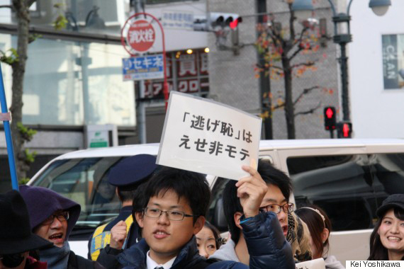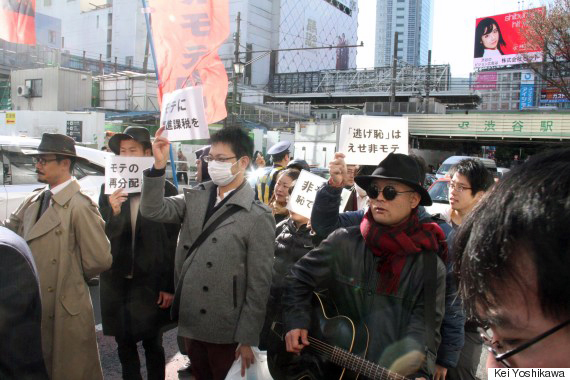 En la víspera de navidad el 24 de diciembre, las calles del distrito de Shibuya en Tokyo nuevamente vieron pasar una manifestación integrada por unas 20 personas que protestaban en contra de la Navidad.