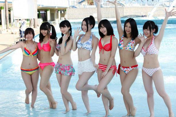 Integrantes de SKE48 promocionan un balneario.