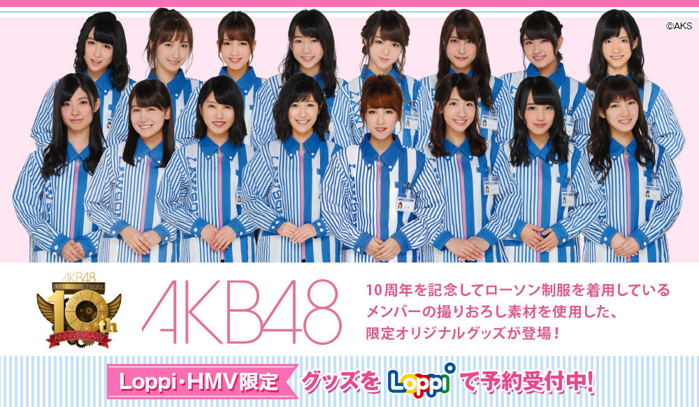 La cadena de tiendas de conveniencia «LAWSON» ha puesto a la venta artículos promocionales de AKB48 con motivo de su décimo aniversario, ofreciendo a sus consumidores relojes desperatadores, cubiertas para smartphones, papas fritas y golosinas con imagenes de las integrantes del grupo utilizando el uniforme de la cadena de «conbini» nipona.