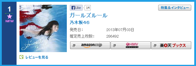 Nogizaka46, el rival oficial de AKB48, sorprendió el miércoles 3 de julio durante el lanzamiento de su sexto sencillo titulado "Girl´s Rule", al colocarse en la cima de la lista diaria del Oricon registrando 286,492 copias vendidas, superando al popular grupo masculino EXILE.