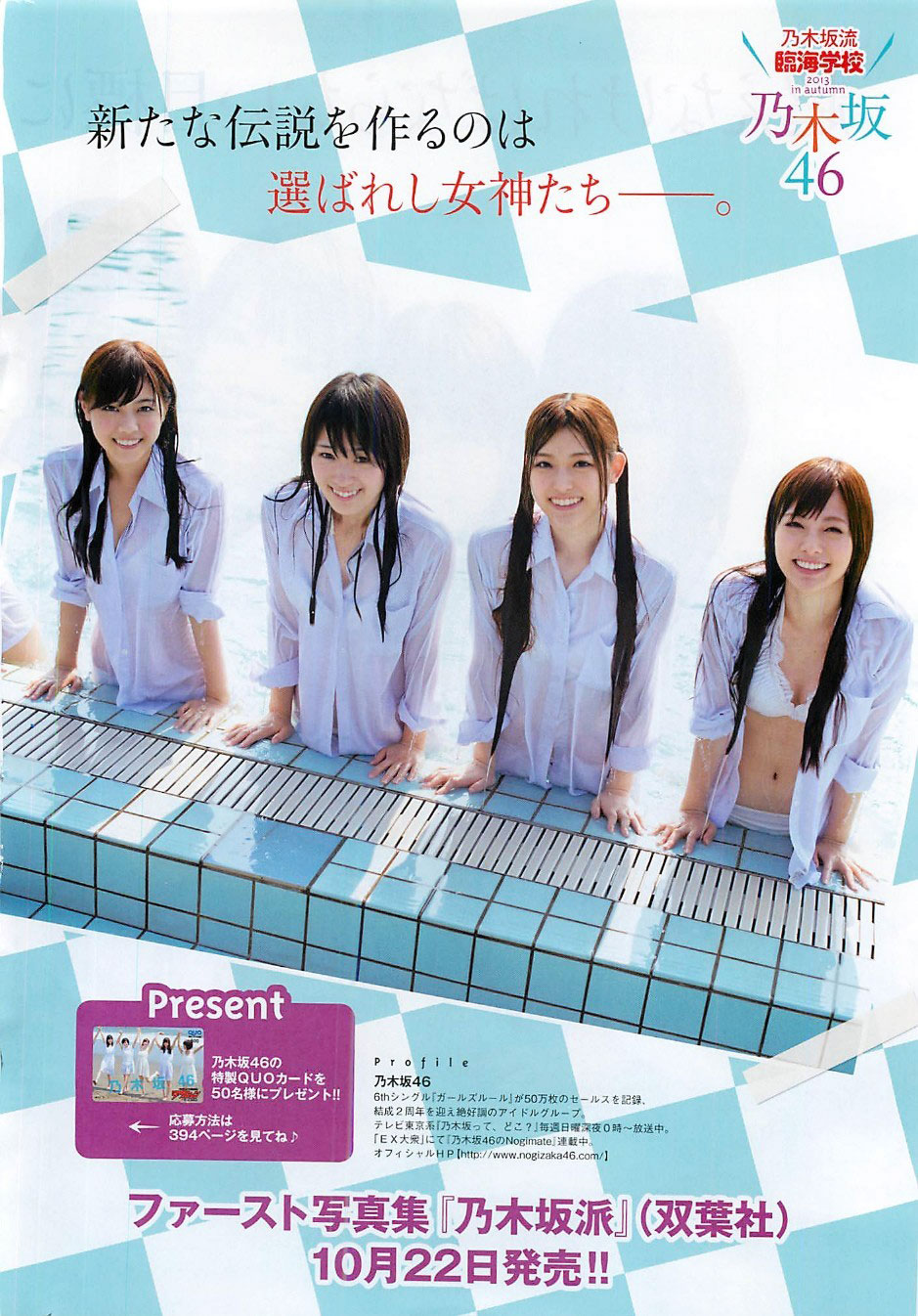 Se ha anunciado que el grupo idol rival oficial de AKB48 Nogizaka46, co-producido por Sony Music y Yasushi Akimoto, lanzará el 22 de octubre su primer photobook, luego de que han pasado tres años desde su formación en junio del año 2011.