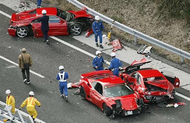 Lo increible del incidente es que los vehículos involucrados fueron costosos automóviles, ocho Ferraris, un Lamborghini y dos Mercedes-Benz. Los vehículos formaban parte de un convoy de 20 vehículos conducidos por un grupo de aficionados a los coches deportivos en el camino de Kyushu a Hiroshima, según informó TBS.
