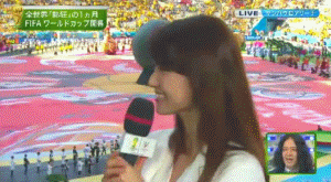 Las cápsulas informativas se transmiten en el popular programa matutino «Mezamashi TV», donde además dio cuenta del resultado del partido inaugural entre las selecciones de Brasil y Croacia, donde el árbitro japonés generó la primera polémica del evento al «regalar» un tiro penal al equipo local, donde los cariocas vencieron tres goles a uno a los croatas.
