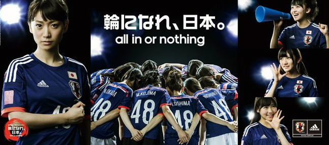 En el comercial, Oshima grita: «Vamos a formar un círculo» y las 150 personas que la rodean responden: «Definitivamente vamos a ganar».