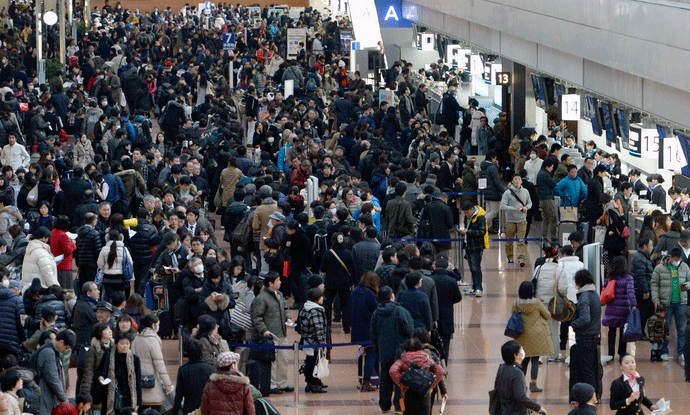 Los aeropuertos de las ciudades del oeste de Hiroshima y Kagawa se cerraron mientras se quitaba la nieve de las pistas de aterrizaje. Imágenes de televisión mostraron a cientos de pasajeros haciendo fila para solicitar el reembolso o cambio de vuelos en el aeropuerto de Haneda en Tokyo.