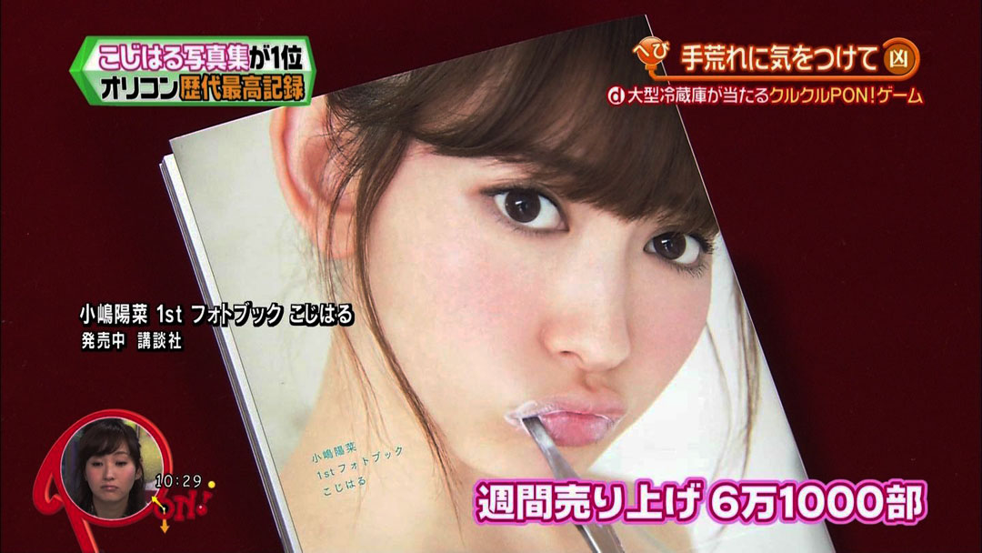 El jueves 9 de enero se anunció que Haruna Kojima (25) integrante de AKB48, se colocó en la cima del Oricon semanal gracias a las ventas de su nuevo photobook titulado «Kojiharu», el cual registró 61,000 copias vendidas durante su primer semana de ventas.