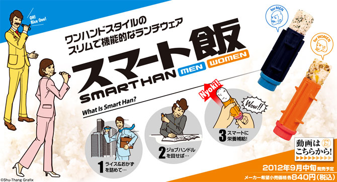 Takara Tomy Arts afirma que «SmartHan» es un compañero esencial para el estilo de vida moderno japonés y en la descripción de su producto esbozan una serie de ventajas para comer las tradicionales bolas de arroz onigiri: