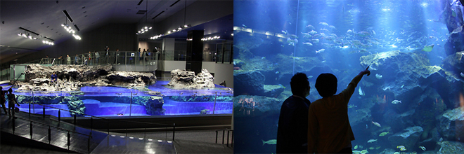 El tanque más grande del acuario, que es de seis metros de profundidad, reproduce el fondo marino que rodea las islas de Ogasawara, localizado a unos 1,000 kilómetros al sur del centro de Tokyo y que fueron reconocidos como Patrimonio Mundial Natural en 2011.