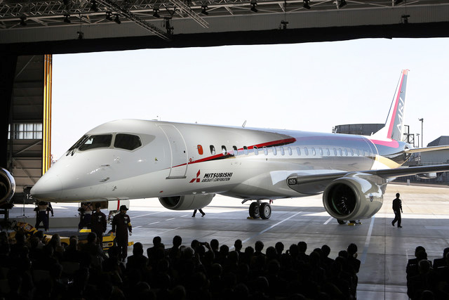 El sábado 18 de octubre Mitsubishi Aircraft Corp. finalmente presentó el primer avión de pasajeros fabricado completamente en Japón después de tres retrasos. La filial de Mitsubishi Heavy Industries Ltd. hizo una ceremonia con motivo del lanzamainto del nuevo turboreactor Mitsubishi Regional Jet (MRJ), en una planta de la ciudad de Toyoyama, Prefectura de Aichi, donde el avión de tamaño mediano fue construido con la ayuda de empresas estatales y particulares.
