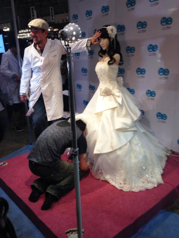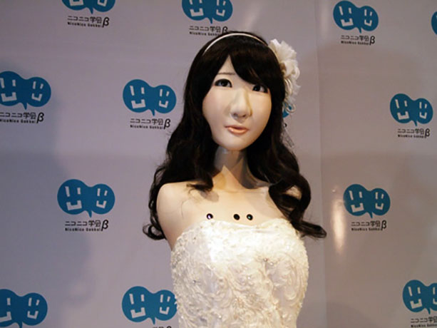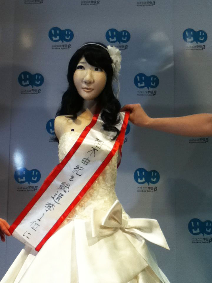 roboyuki1yukirinreinaEl sábado 26 de abril en el marco de un evento organizado por la sociedad científica «Nico nico Gakkai Beta», que a su vez forma parte del popular sitio de intercambio de videos japonés Nico nico Douga», se presentó una versión mejorada de un robot con el rostro de Yuki Kashiwagi, integrante del grupo idol AKB48, vestida de novia.