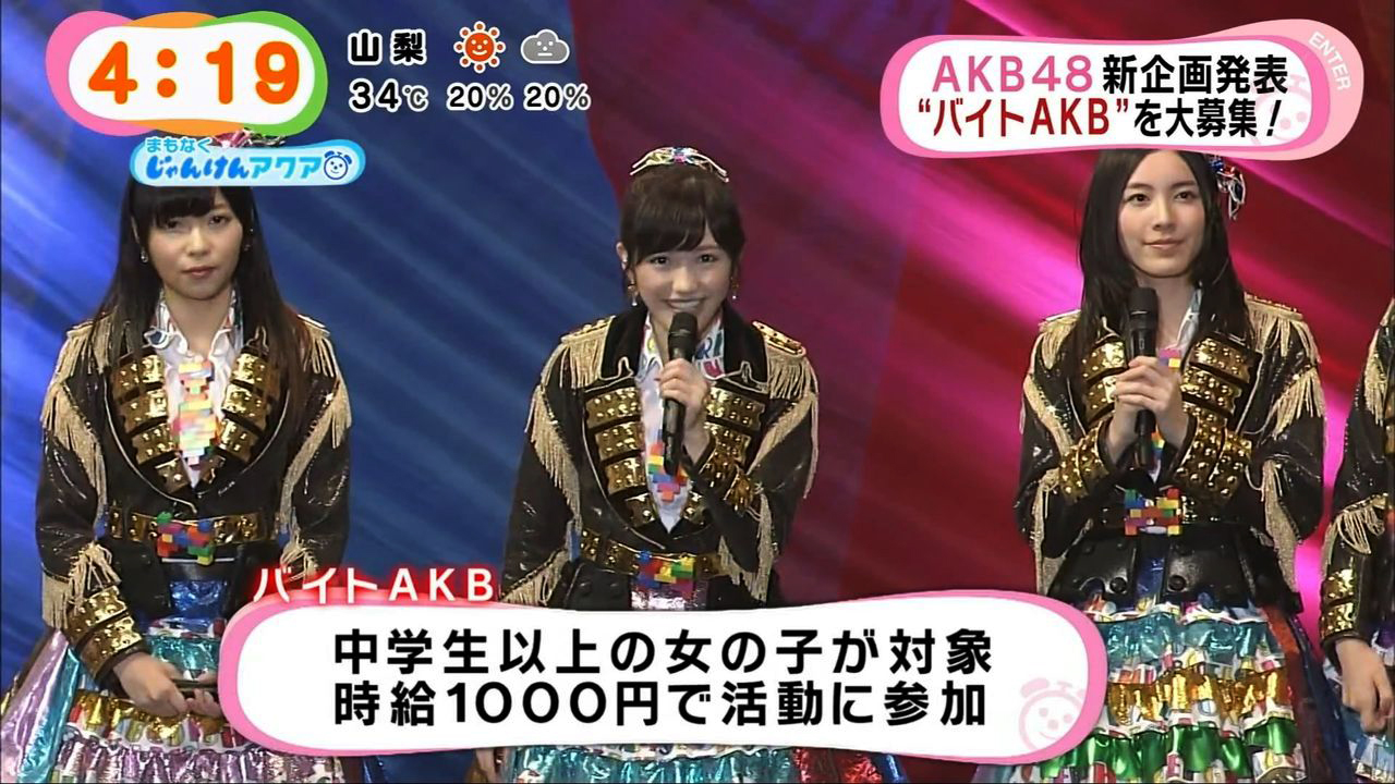 En el live se anunció que la empresa y AKB48 inician una campaña de reclutamiento de chicas que estén interesadas en trabajar a tiempo parcial como idols, percibiendo un sueldo de 1,000 yenes por hora y en donde uno de los requisitos que deben cubrir las interesadas es ser estudiantes de secundaria o superior.