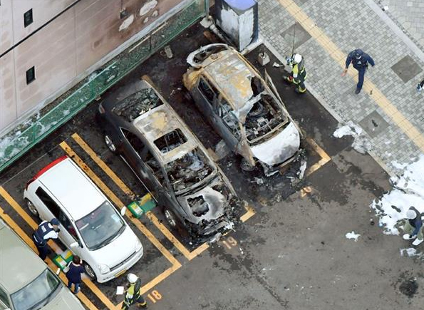 El Yomiuri Shimbun dijo que un automóvil estacionado explotó, provocando graves daños a otros dos vehículos cercanos. Minutos después, la policía encontró el cuerpo quemado del hombre dentro del parque.