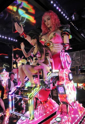 París puede tener su «Moulin Rouge», que atrae a turistas de todo el mundo para disfrutar de tradicional can-can francés y hermosas bailarinas, pero Tokyo tiene ahora su propia experiencia, se trata de un cabaret futurista, el «restaurante Robot», con robots gigantes operados por chicas en trajes de baño en medio de una deslumbrante profusión de luces.