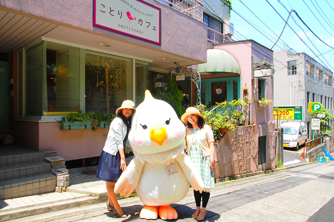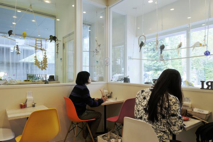 Otra cafetería que se llama «Torinoiru Café», que en japonés significa cafetería en la que hay aves, en el distrito de Kiba en Tokyo, hay un loro que saluda a los clientes diciendo » Konnichiwa » (hola).