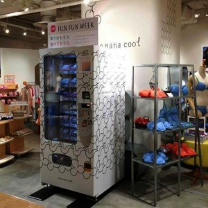 En agosto de este año la compañía Une Nana Cool Corp., subsidiaria de la popular marca de ropa interior japonesa «Wacoal» instaló en el distrito de Shibuya en Tokyo la primer máquina expendedora de sujetadores del mundo, la cual se lanzó como un experimento comercial para promocionar su nueva línea de sujetadores «Fun Fun Week» y con el objetivo de permanecer una cierta cantidad de tiempo en un lugar específico para ver la respuesta de los potenciales consumidores.