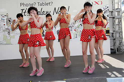 Junto a las integrantes del grupo se presentó la mangaka Erika Sakurazawa, quién utilizó el nuevo smartphone de Samsung para dibujar un retrato de Ayaka Wada, mostrando el resultado en una gran pantalla de la misma marca.
